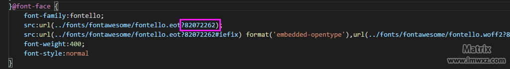 handsome.min.css文件,查找fontello.eot?,然后把从这之后的所有图中的数字替换为步骤3中复制的数字